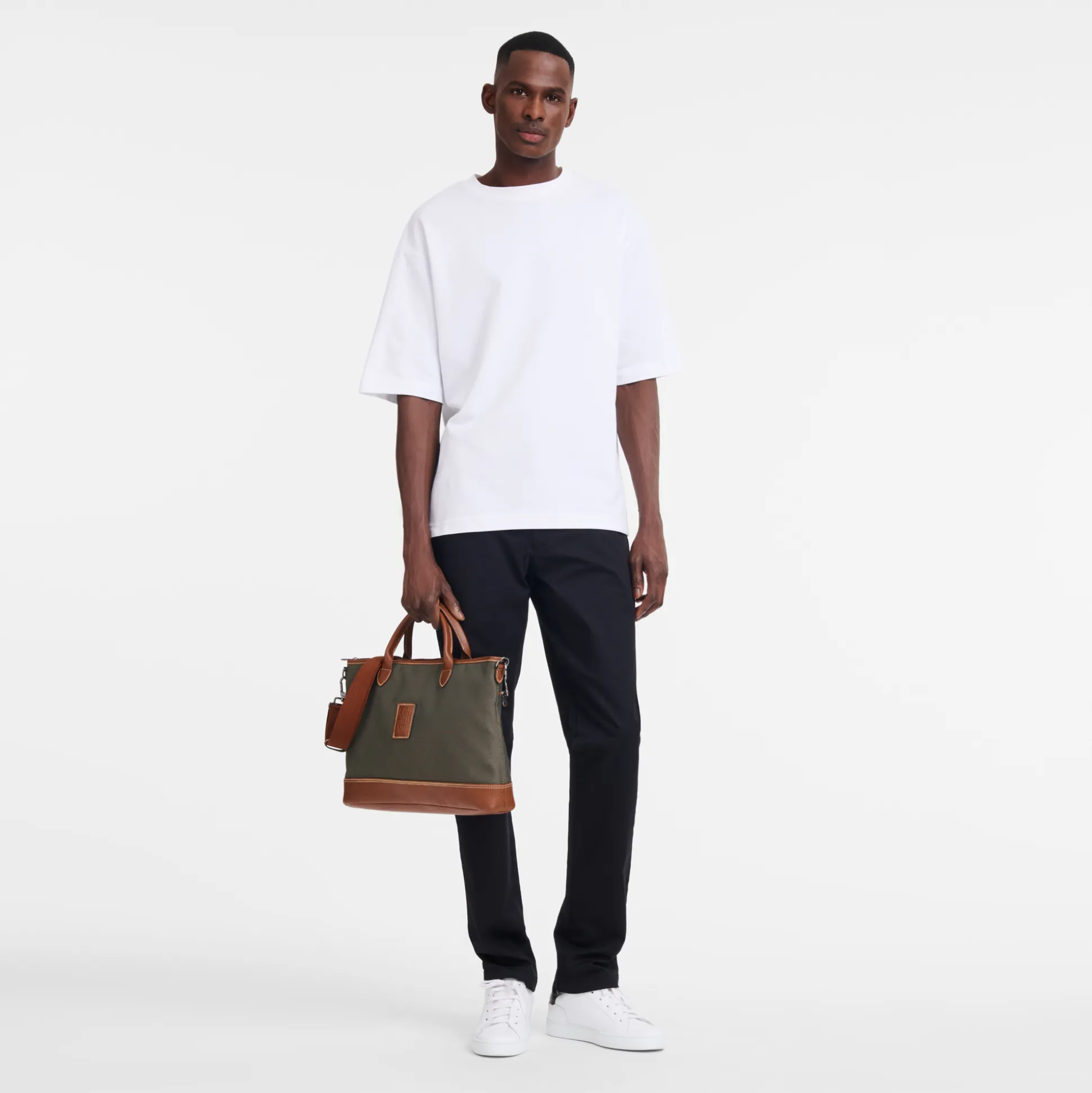 Diese minimalistische Businesstasche begleitet Sie auf Ihren täglichen Reisen. Sie ist gut konstruiert mit abnehmbarem Schulterriemen und kann über der Schulter und in der Hand getragen werden. BOXFORD ist die legendäre Linie der Marke und ist ein Sinnbild dezenter Eleganz. Die schlichten und gleichzeitig markanten Herrentaschen, Businesstaschen und das berühmte Reisegepäck sind mit einem rechteckigen Longchamp-Prägelogo und edlen Kontrastnähten verziert.Der Canvas wird durch einen Besatz aus zweifarbigem russischem Leder ergänzt, der ihm eine ausdrucksstarke, dreidimensionale Optik verleiht.