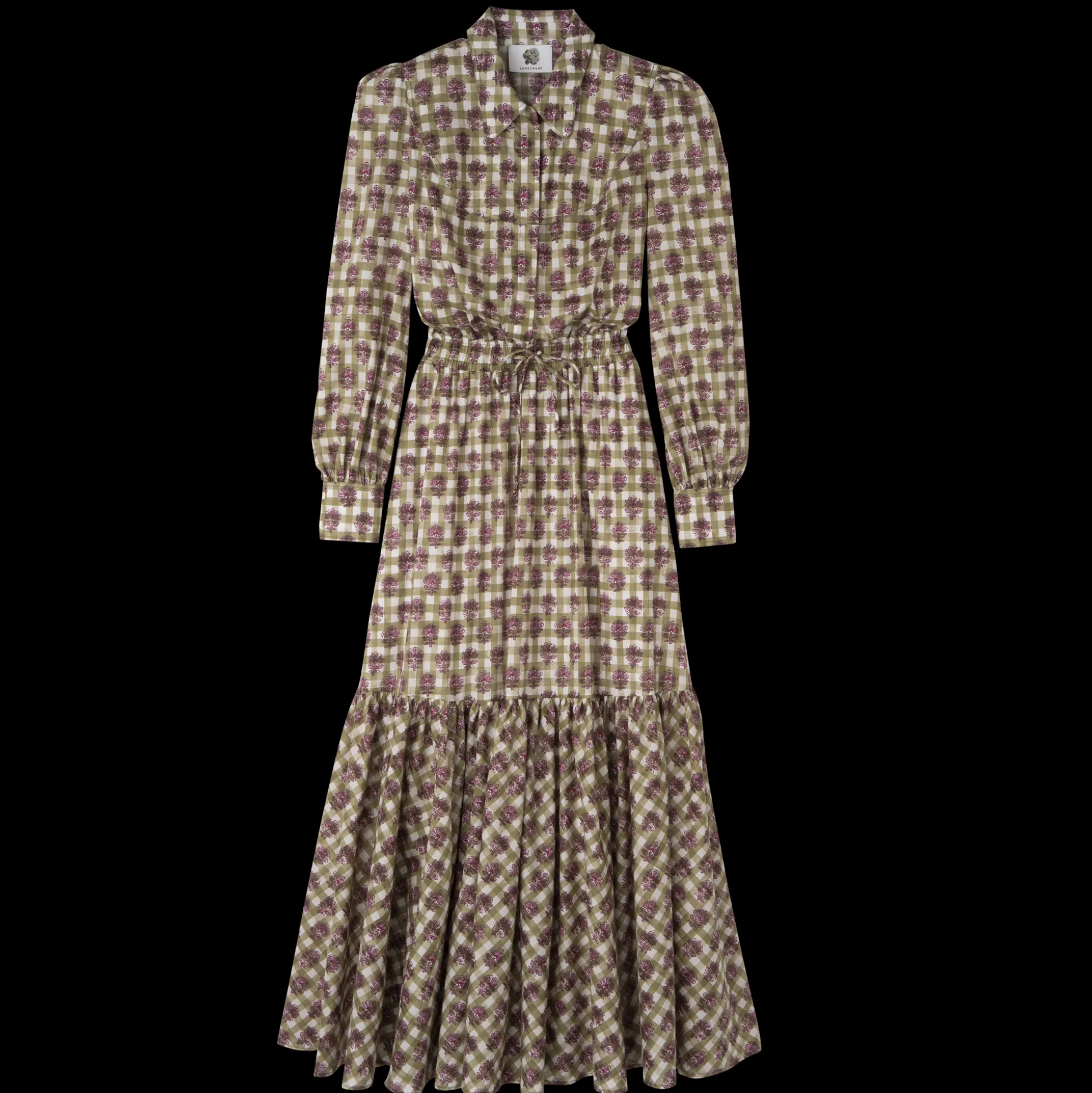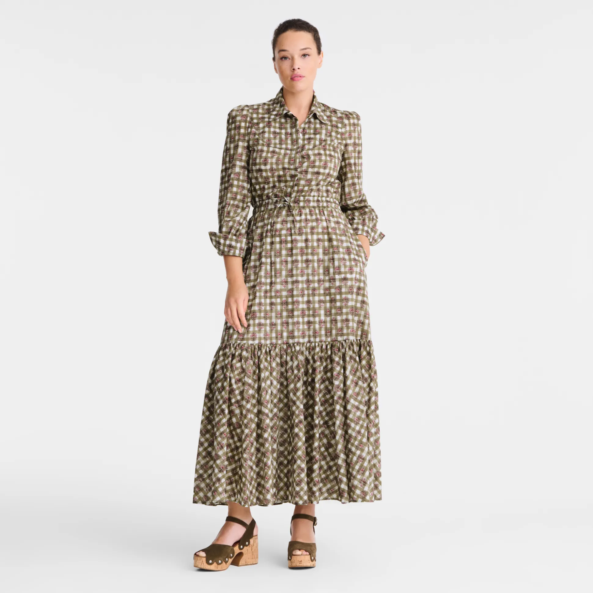 Dieses lange Kleid aus Baumwollvoile mit einem Prägedruck, der von der malerischen Landschaft inspiriert ist, bietet Eleganz und Komfort in einem. Mit Hemdkragen, langen Ärmeln und einem elastischen Bund, der die Silhouette betont, entsteht ein femininer Look mit einer lässigen, selbstbewussten Ausstrahlung. In dieser Saison strahlt die Konfektionskollektion der Maison eine anregende, optimistische Energie aus – voller Lebendigkeit, Freude, Zeitlosigkeit und mit einem Hauch rustikalem Charme, perfekt für selbstbewusste Freigeister. Die Pariserin navigiert mühelos durch den Kontrast zwischen städtischem Trubel und ländlicher Ruhe. Sie geht nahtlos über von einem Look mit kräftigen pinken Akzenten zu einem Ensemble mit Farben und Mustern, die von einem Gemüsegarten mit natürlichen, fruchtigen Grüntönen inspiriert sind. Sie enthüllt anmutig jede Facette ihrer selbst und bleibt dabei immer elegant.