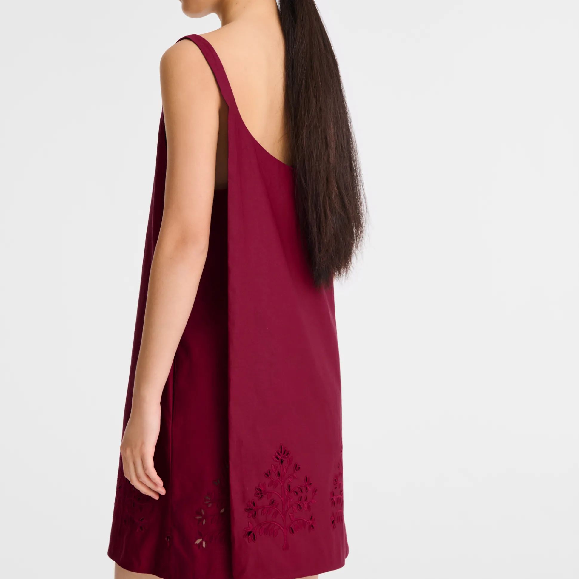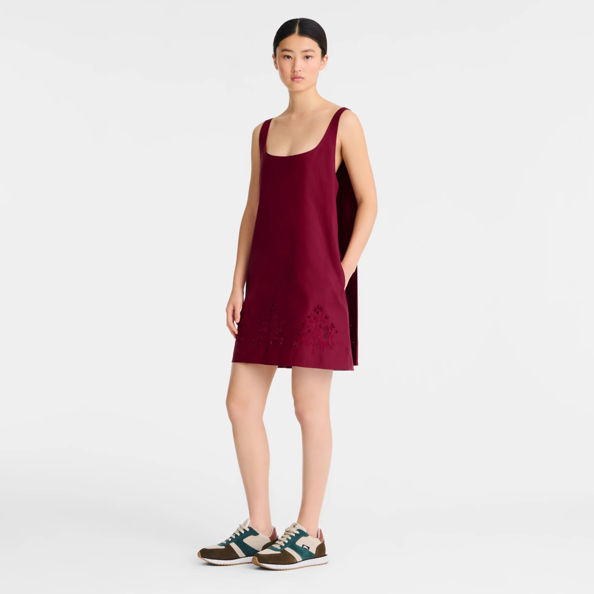 Dieses Sommerkleid in dezenten, frischen Farbtönen fängt das Gefühl des Urlaubs ein. Das elegante, geradlinige Design ist mit einer englischen Stickerei verziert, die den Lebensbaum darstellt. Ein großer eckiger Ausschnitt rundet das Design ab. In dieser Saison strahlt die Konfektionskollektion der Maison eine anregende, optimistische Energie aus – voller Lebendigkeit, Freude, Zeitlosigkeit und mit einem Hauch rustikalem Charme, perfekt für selbstbewusste Freigeister. Die Pariserin navigiert mühelos durch den Kontrast zwischen städtischem Trubel und ländlicher Ruhe. Sie geht nahtlos über von einem Look mit kräftigen pinken Akzenten zu einem Ensemble mit Farben und Mustern, die von einem Gemüsegarten mit natürlichen, fruchtigen Grüntönen inspiriert sind. Sie enthüllt anmutig jede Facette ihrer selbst und bleibt dabei immer elegant.