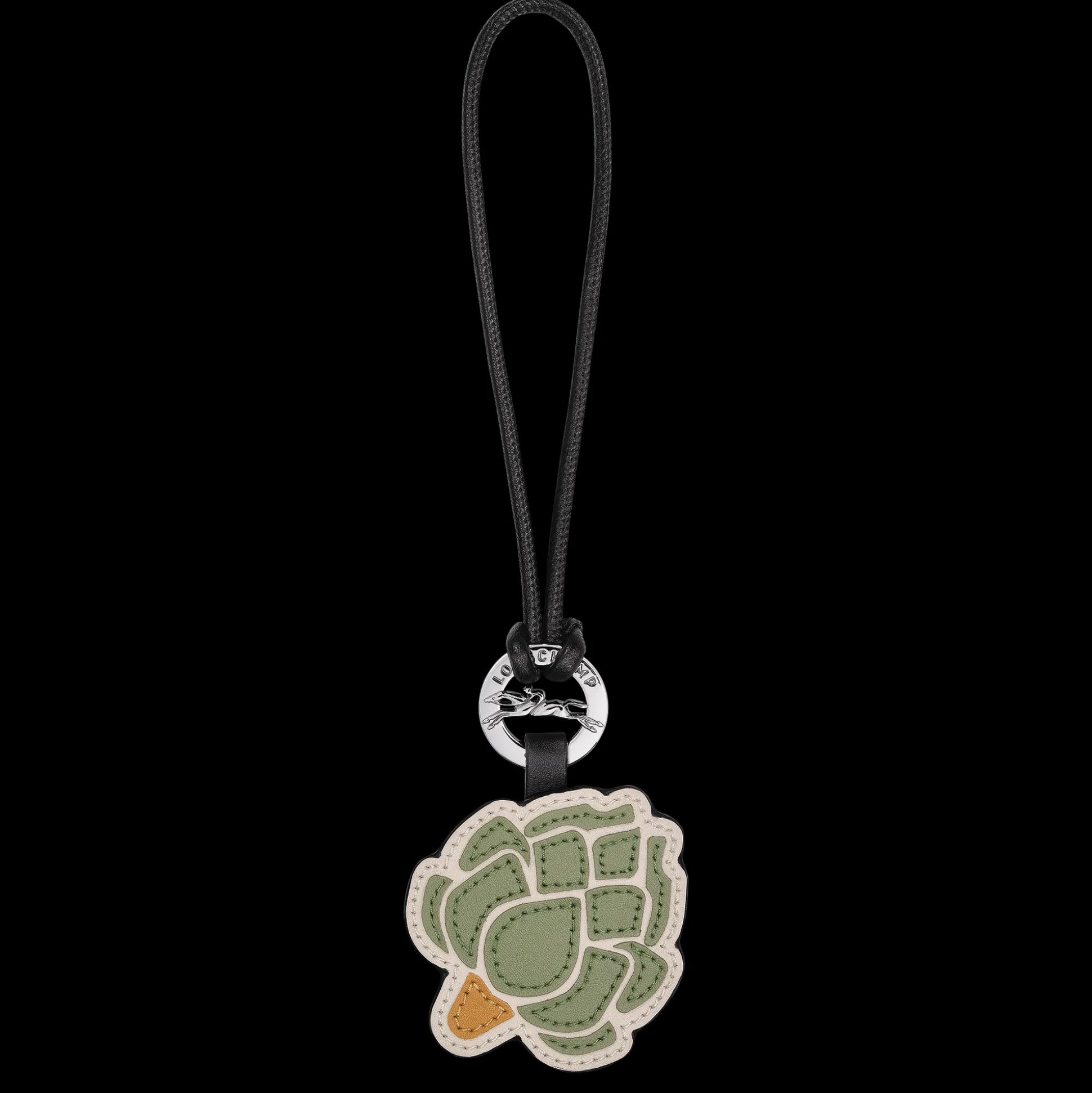 Erfreuen Sie sich an einer der fünf täglich empfohlenen Obst- und Gemüsesorten – mit diesem Schlüsselanhänger aus Rindsleder, der die Wunder des heimischen Gemüsegartens preist. Die Artischocke verfügt sogar über einen Lederriemen und einen Ring mit Longchamp-Logo und verkörpert den Geist der Frühjahr/Sommerkollektion 2025. Der Schlüsselanhänger ist ein funktionelles Accessoire für den Alltag. Jedes Jahr erneuert das Haus Longchamp seine Kollektion mit neuen, schicken und skurrilen Modellen, um echte Schmuckaccessoires aus Leder oder Metall herzustellen.