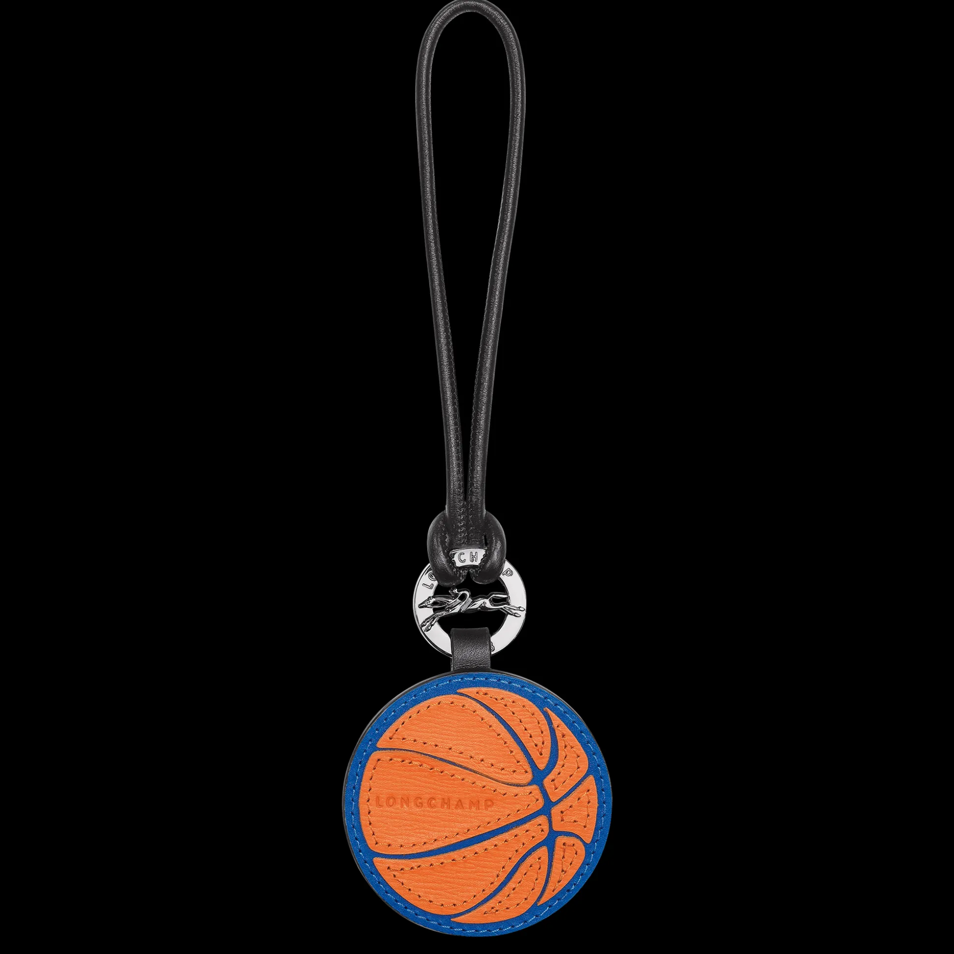 Dieser sportliche Longchamp-Schlüsselanhänger aus Rindsleder zeigt einen Mini-Basketball. Der Schlüsselanhänger ist ein funktionelles Accessoire für den Alltag. Jedes Jahr erneuert das Haus Longchamp seine Kollektion mit neuen, schicken und skurrilen Modellen, um echte Schmuckaccessoires aus Leder oder Metall herzustellen.