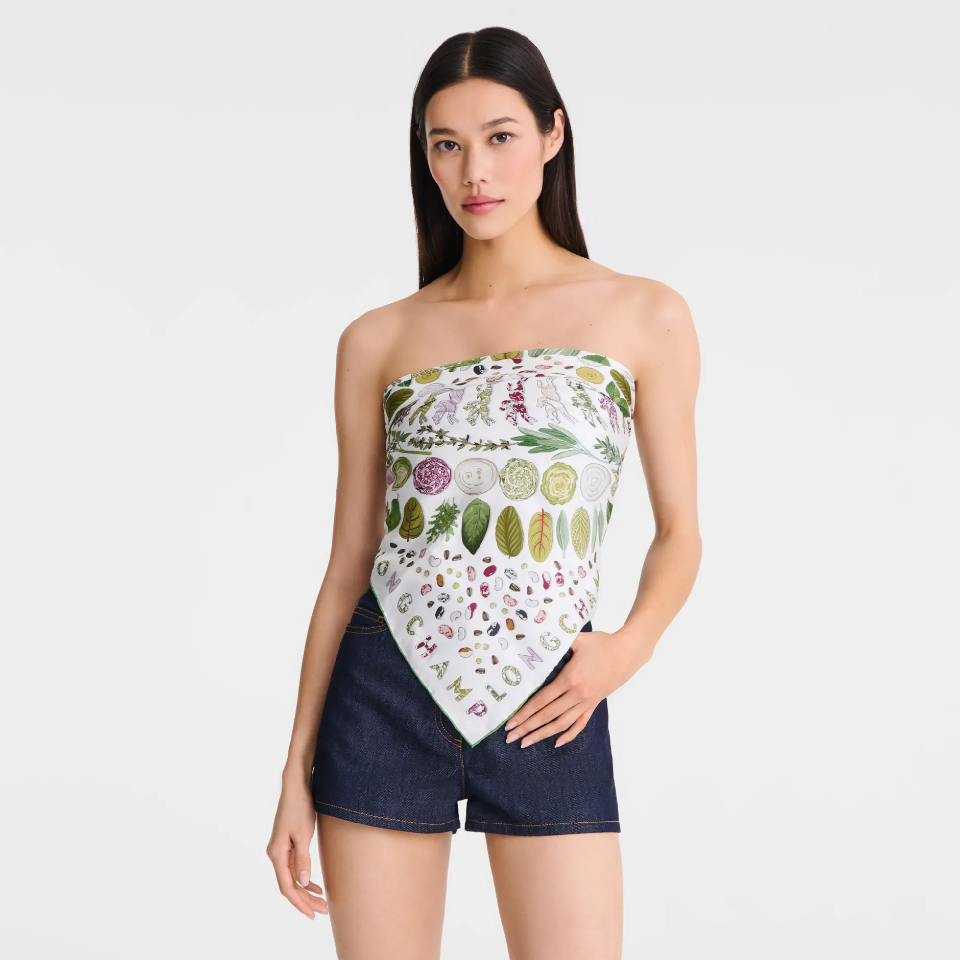 Dieses große, GOTS-zertifizierte Seidentuch steht für einen authentischen Look. Mit seinem faszinierenden Design, bei dem Gemüse und aromatische Pflanzen elegant um die Longchamp-Pferde schweben, erinnert es an eine subtile kreisförmige Bewegung, die uns in ihren Bann zieht. Setzen Sie jetzt mit einem Longchamp-Seidenschal ihr ganz persönliches Statement: Sein großzügiges Format ermöglicht es, eine aufregende Geschichte zu erzählen. Als kreative Erweiterung der Prêt-à-porter-Kollektion besitzt er eine einzigartige Identität und ist ein Kunstwerk für sich.