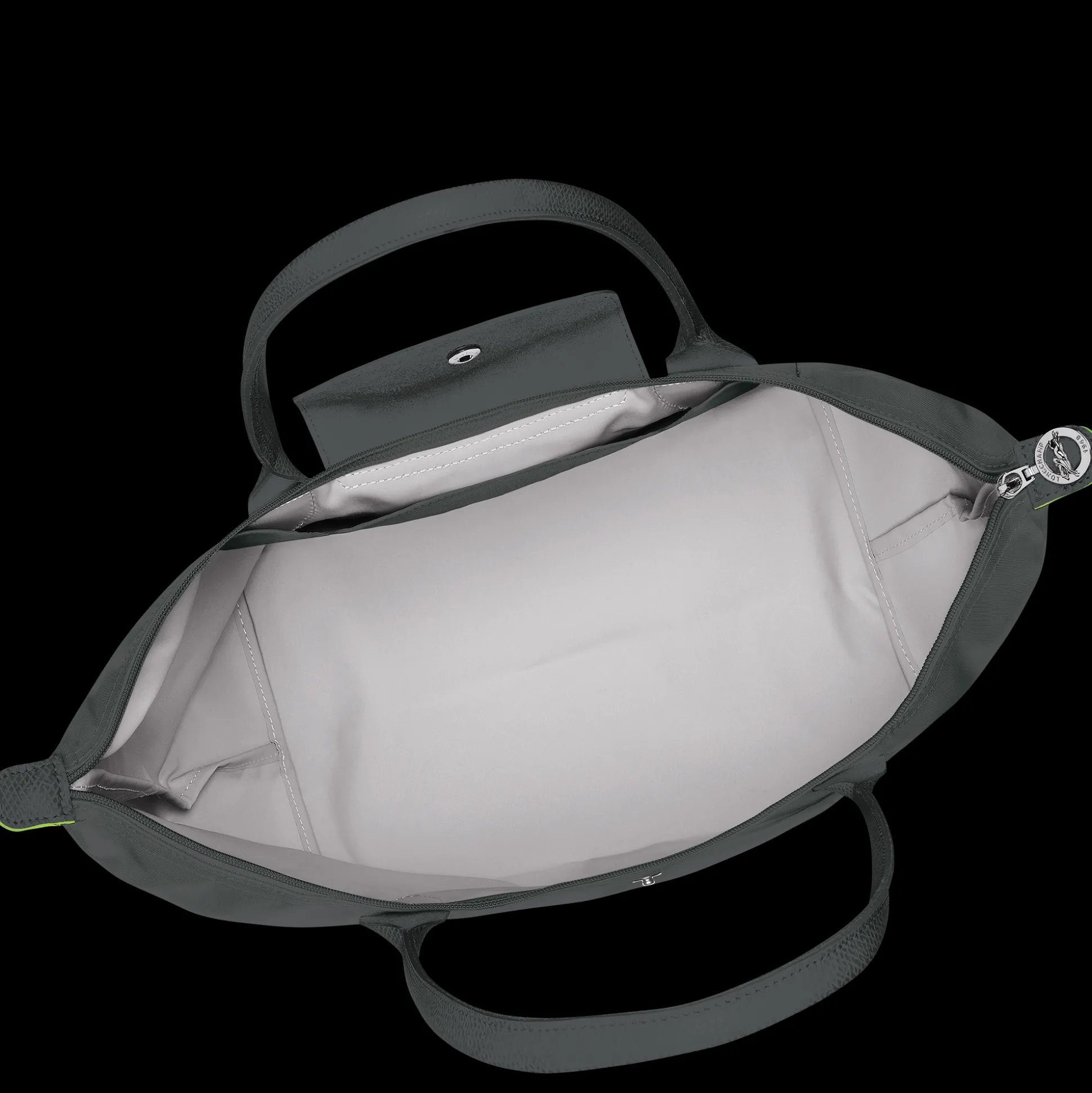 Die Tasche wird nach strengen Regeln wie dem gestickten Pferd gefertigt und mit den für Longchamp charakteristischen Lederbesätzen.