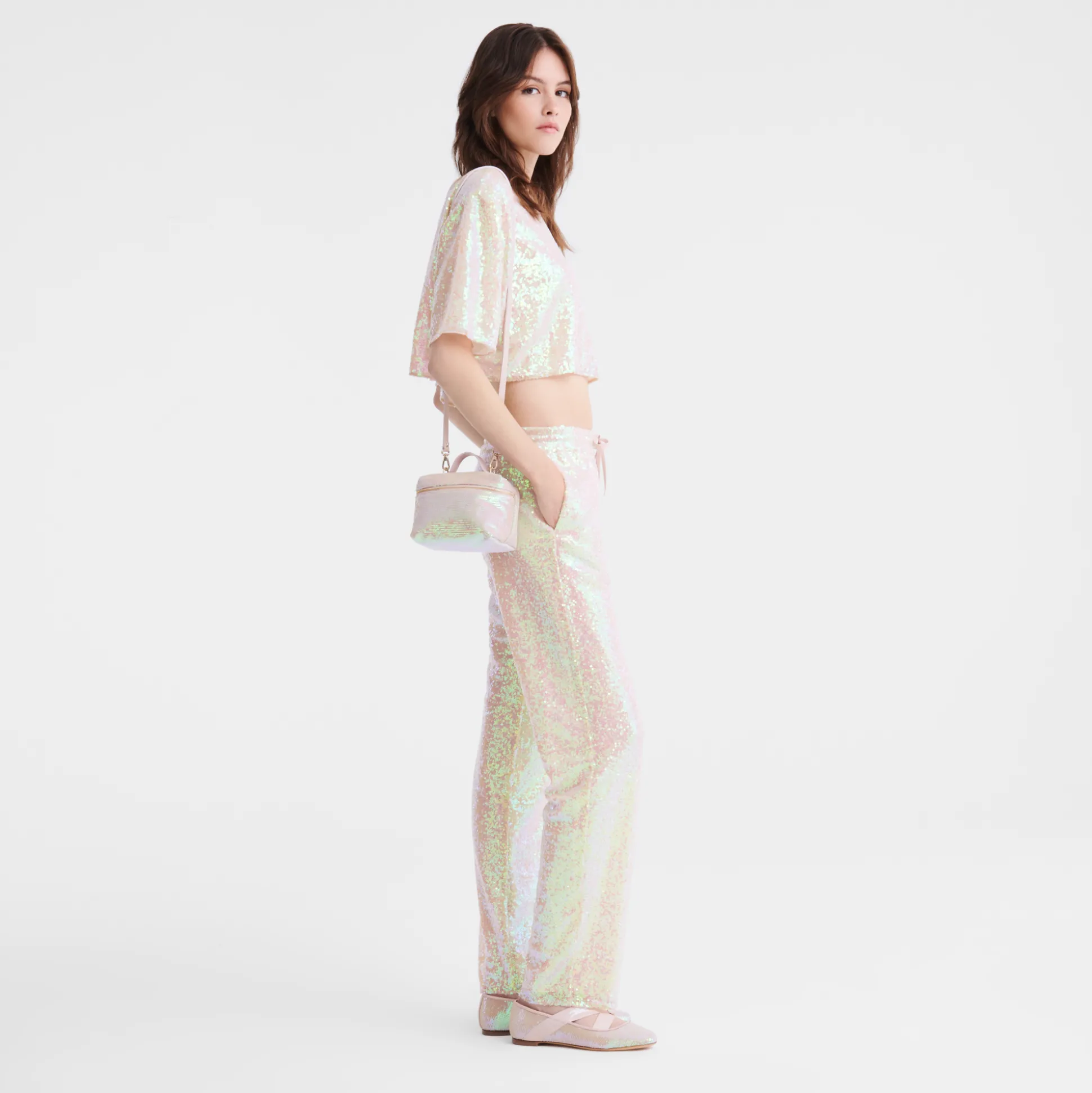 Diese Kosmetiktasche mit holografischen Pailletten spiegelt den Optimismus der Pariserin wider und feiert die Lebensfreu…